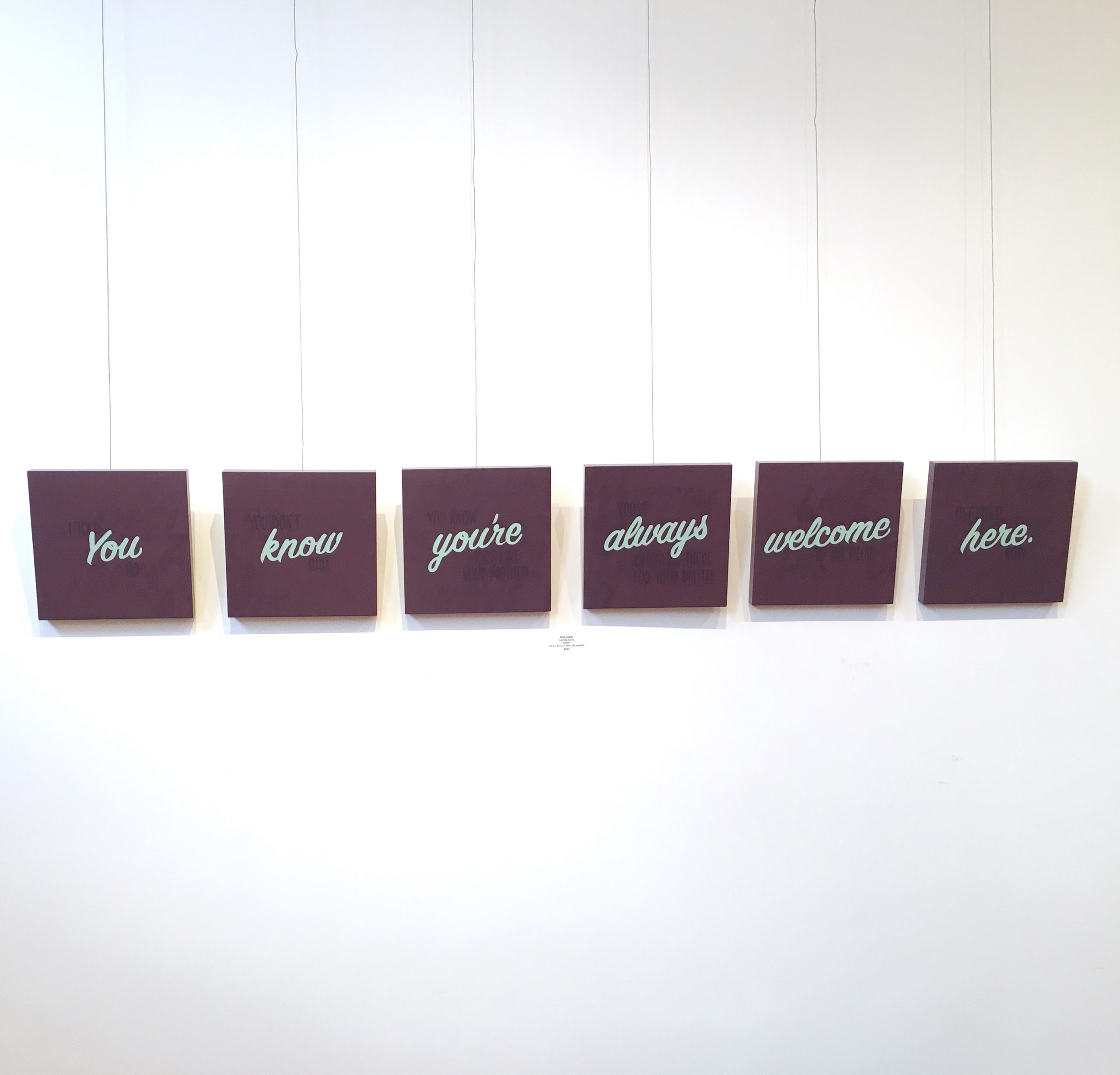The works presented in Changing Lanes use typography and signwriting techniques to examine family, belonging and self-acceptance while also